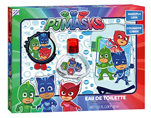 Air-Val PJ Masks Geschenk Set mit PJ Masks EDT Parfum Spray 30 ml und Waschhandschuh + Haken, Geschenk für Kinder ab 3 Jahren