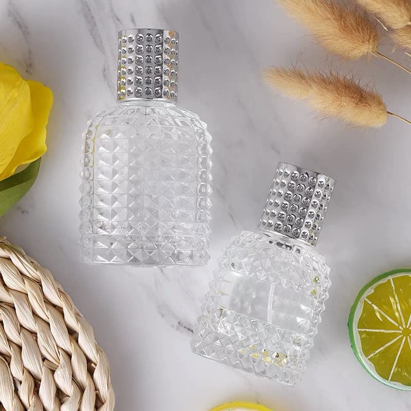 【Einzigartiges Design】:Die Parfümflasche ist mit einer ovalen Ananas-Beule versehen, Kann einen guten Anti-Rutsch-Effekt spielen,der Flaschenverschluss mit Diamant-Einleglöchern, die die gesamte Flasche reflektierender und glänzender machen,Es ist sehr angenehm zu bedienen.