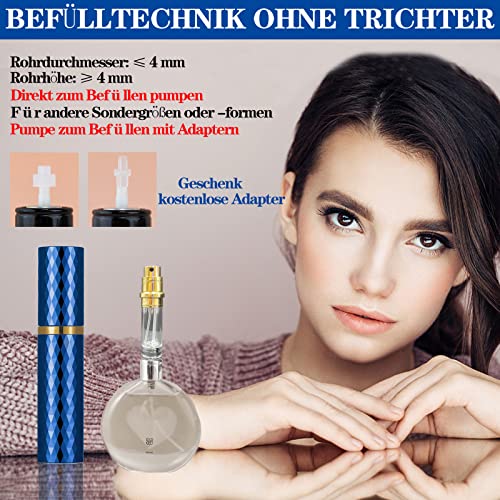 Anwendbares Parfüm -Unsere Mini-Parfümflasche für Reisen ist für die Original-Parfümflasche geeignet, deren Rohr größer oder gleich 4 mm sein sollte und deren Durchmesser weniger als 4 mm betragen sollte. Und für den Fall, dass Sie sie brauchen, haben wir zwei Transferadapter vorbereitet.